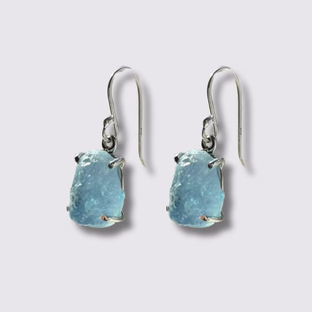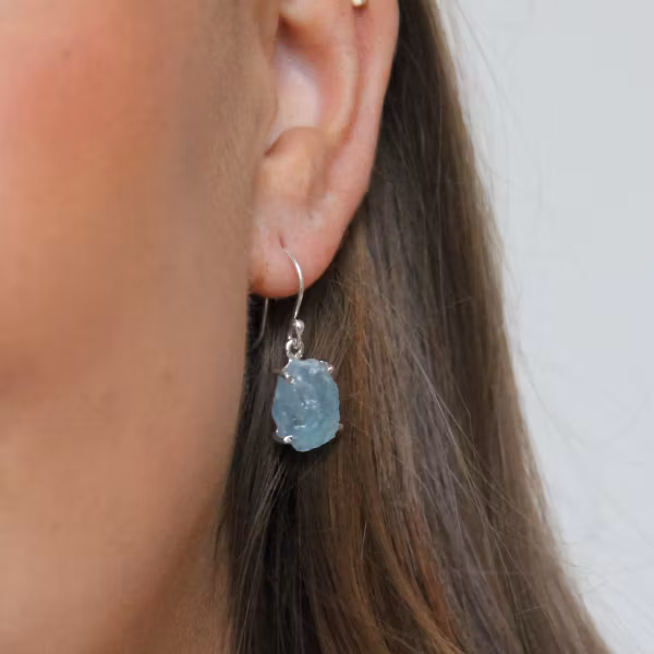 Ett otroligt vackert örhänge i rå akvamarin. Mått är ca 15x10mm.