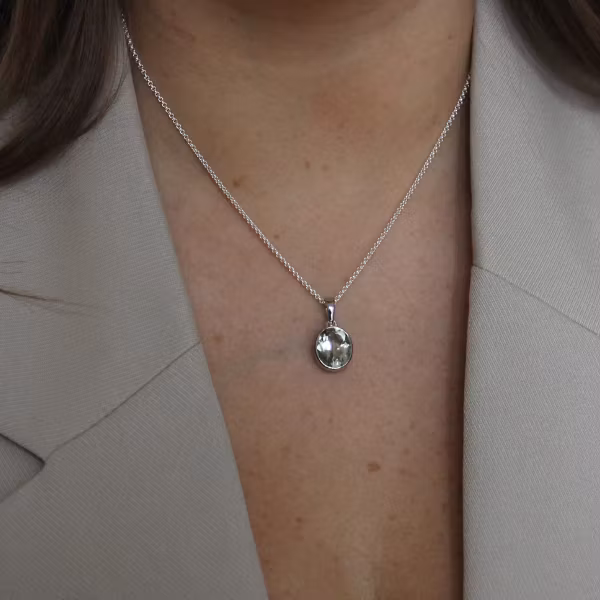 En otroligt vackerT halsband med silverinfattad grön ametist. Stenens storlek är ca 10x8mm.