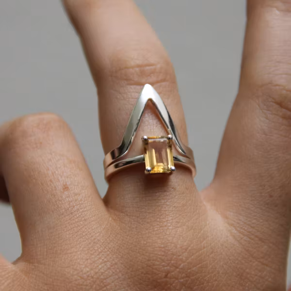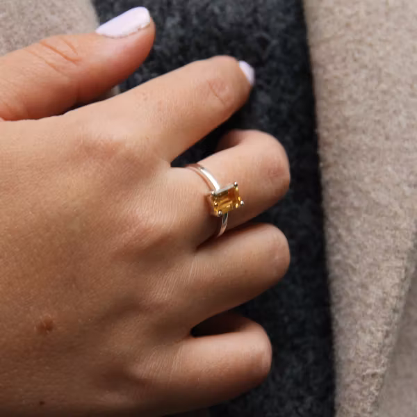 En vacker ring med en äkta citrin. Med sin glittrande, gula färg fångar den ögat direkt. Supersnygg att matcha med guld! GUL CITRIN: Citrin sägs hjälpa oss