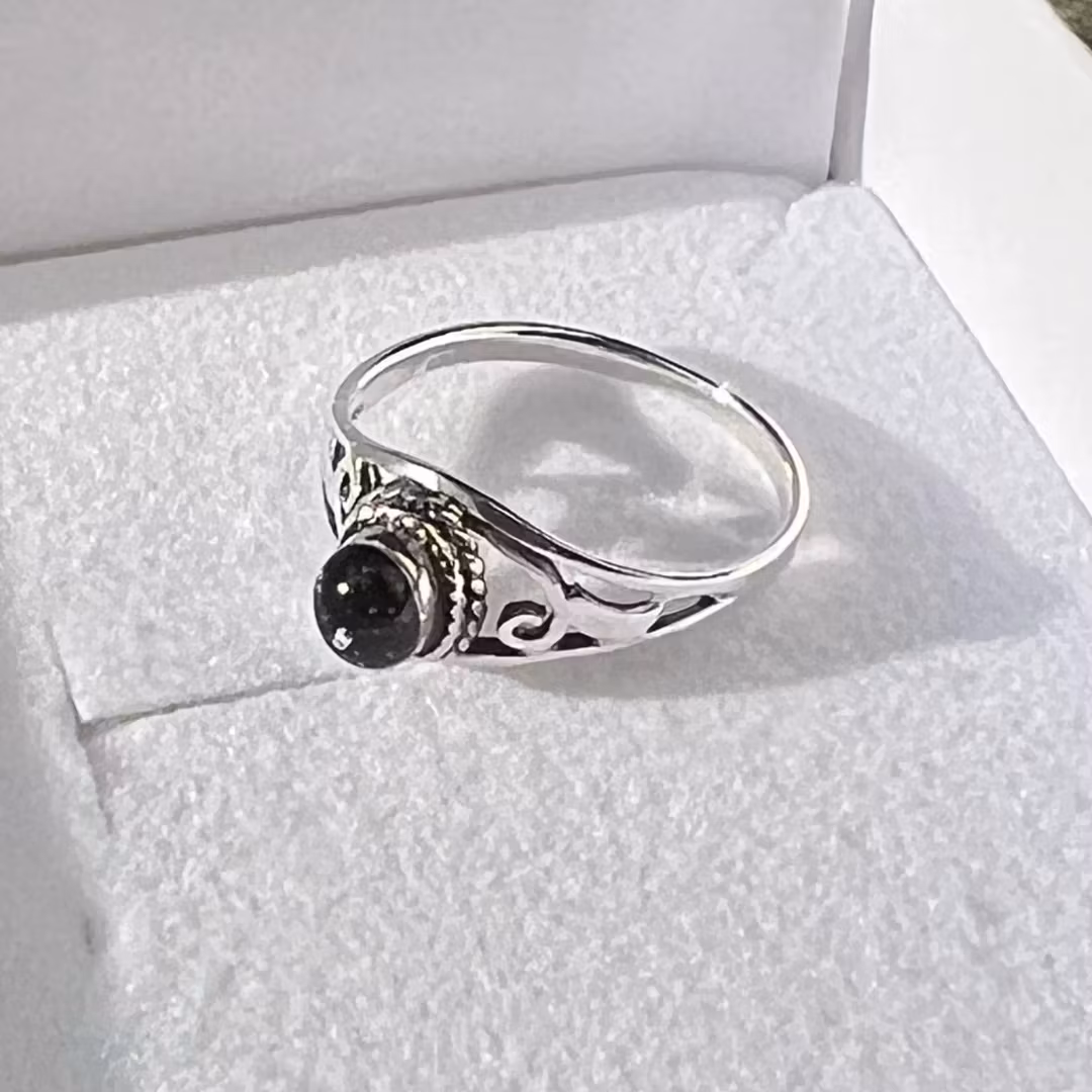En vacker ring i vintagestil. Bär minnet av en nära person, djur eller en härlig upplevelse nära dig. Minnessmycket på bilden är infuserat med aska som lagts på en botten med färgen onyx. (svart)..