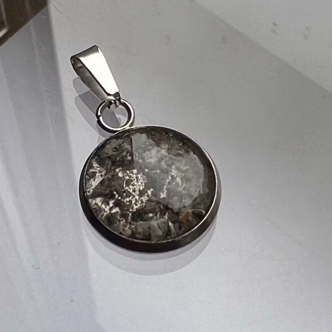 Ett vackert och klassiskt smycke i kirurgiskt stål. Bär Detta halssmycke är tillverkat av kirurgiskt stål som är guldpläterat. Kedjan är av 925 sterling silver med en 18k guldplätering. Minnessmycket på bilden är infuserat med aska som lagts på en creme-färgad botten.