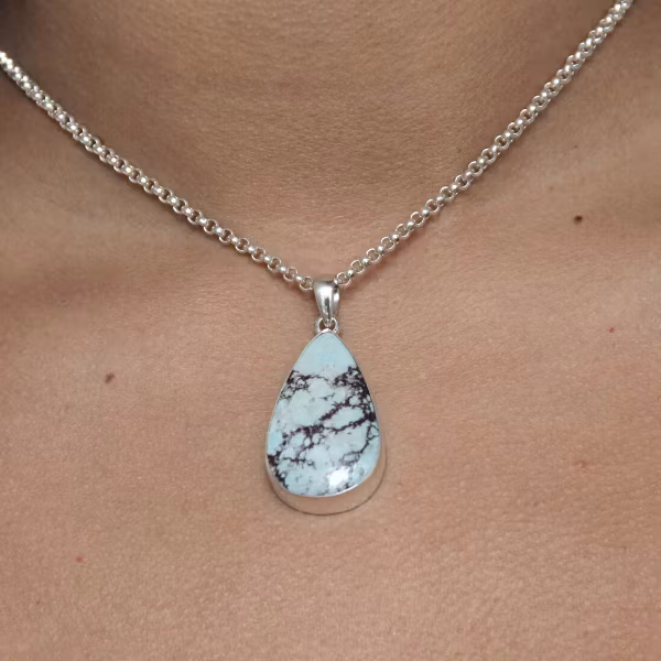 Ett fantastiskt vackert halssmycke i silver med äkta turkos. Detta halssmycke mäter 45x20mm inklusive hänget.