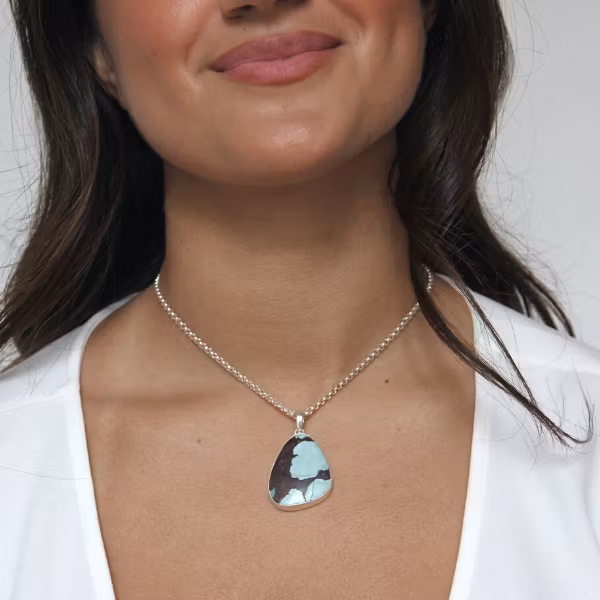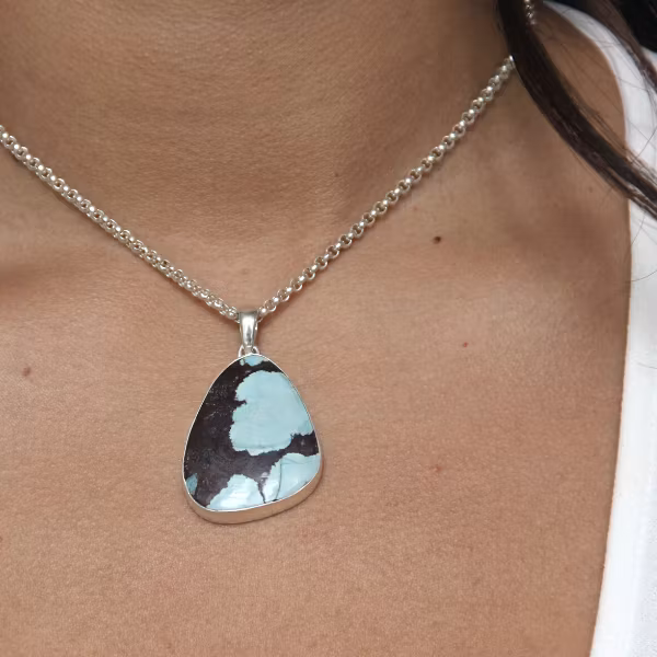 Ett fantastiskt vackert halsband i silver med äkta turkos. Väldigt vackert! Detta halssmycke mäter 46x28mm totalt.