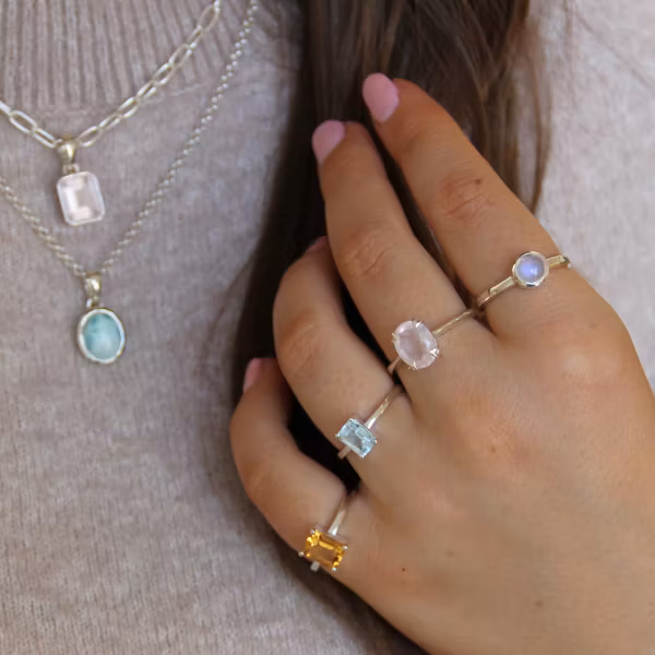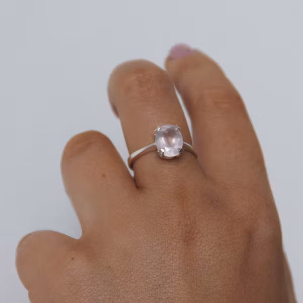 En magiskt vacker silverring med äkta rosenqvarts. Stenen mäter 10x8mm.